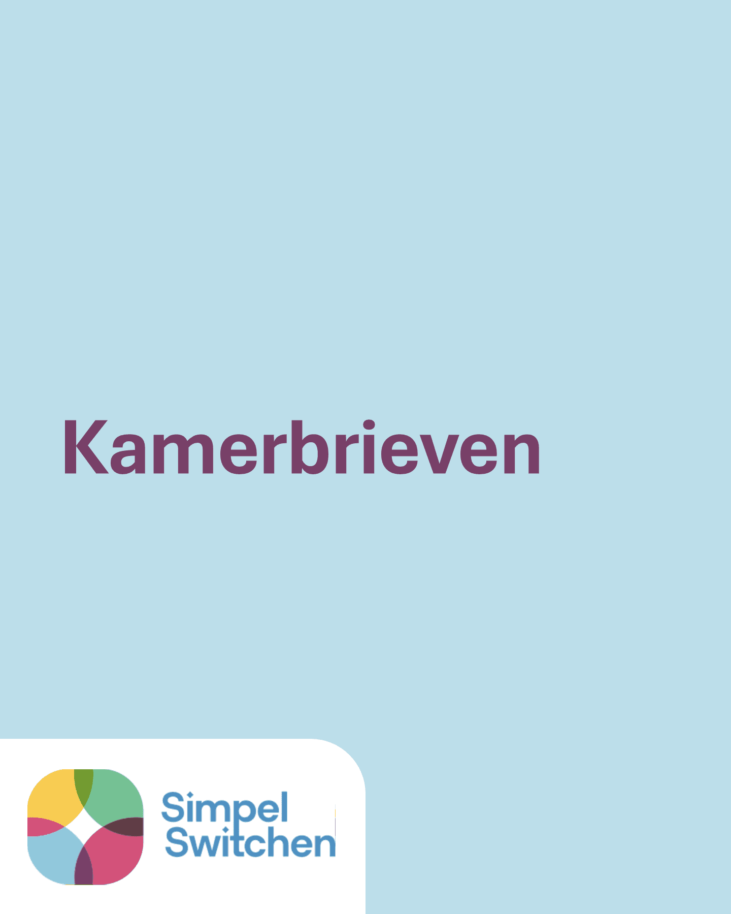 - Op deze pagin lees je via de link Kamerbrieven kamerbrieven en kamerstukken die zijn verschenen in relatie tot Simpel Switchen.