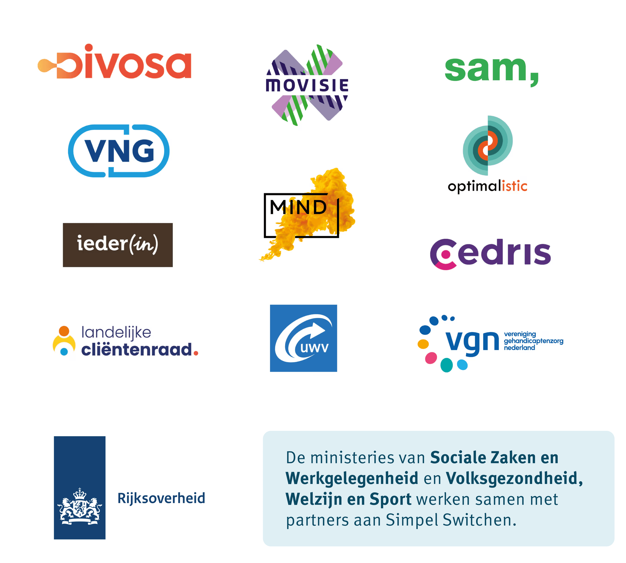 - Op deze pagina zie je met welke partners de ministeries SZW en VWS samenwerken in het programma Simpel Switchen.
